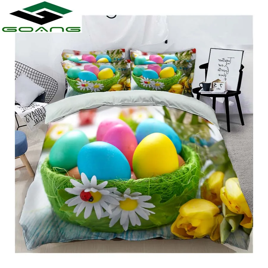 [[SPECIAL OFFERS]] GOANG luxury bedding set 3d bed sheet duvet cover pillowcase 3d digital printing Easter colored eggs Festive party decoration one of the best