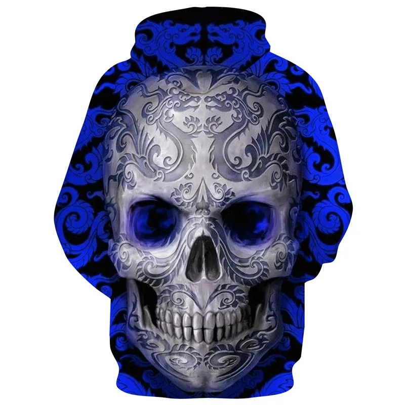 Dear my personal favorite 2019 Men Spring Autumn Hoodie Blue Skull Head Digital Printing European American Baggy Hooded Lovers Loodie RECOMMENDED TODAY